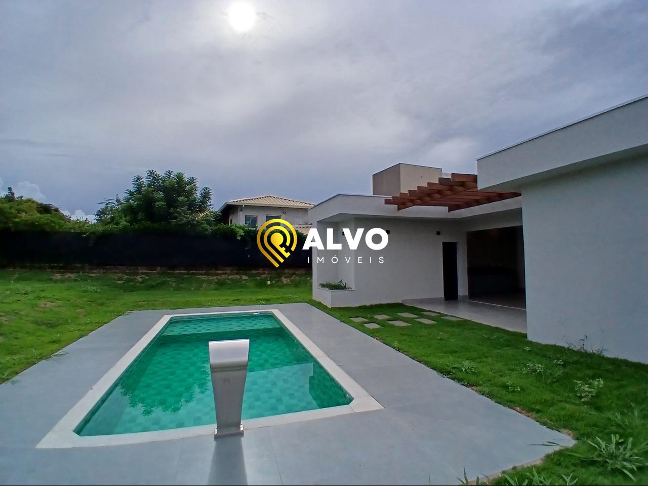 Piscina de Vinil com Cascata: O destaque do lazer privativo, cercada por um paisagismo impecável.